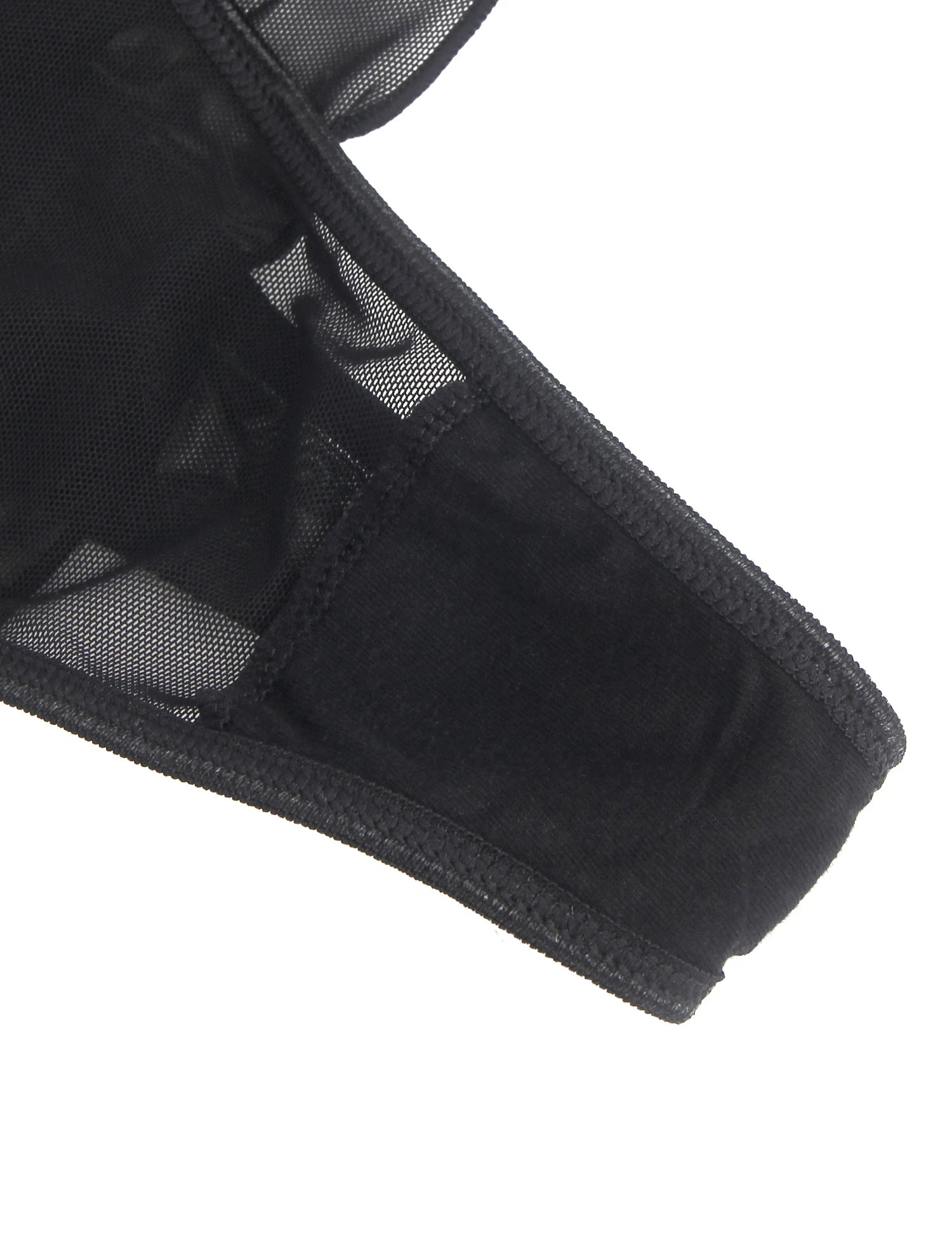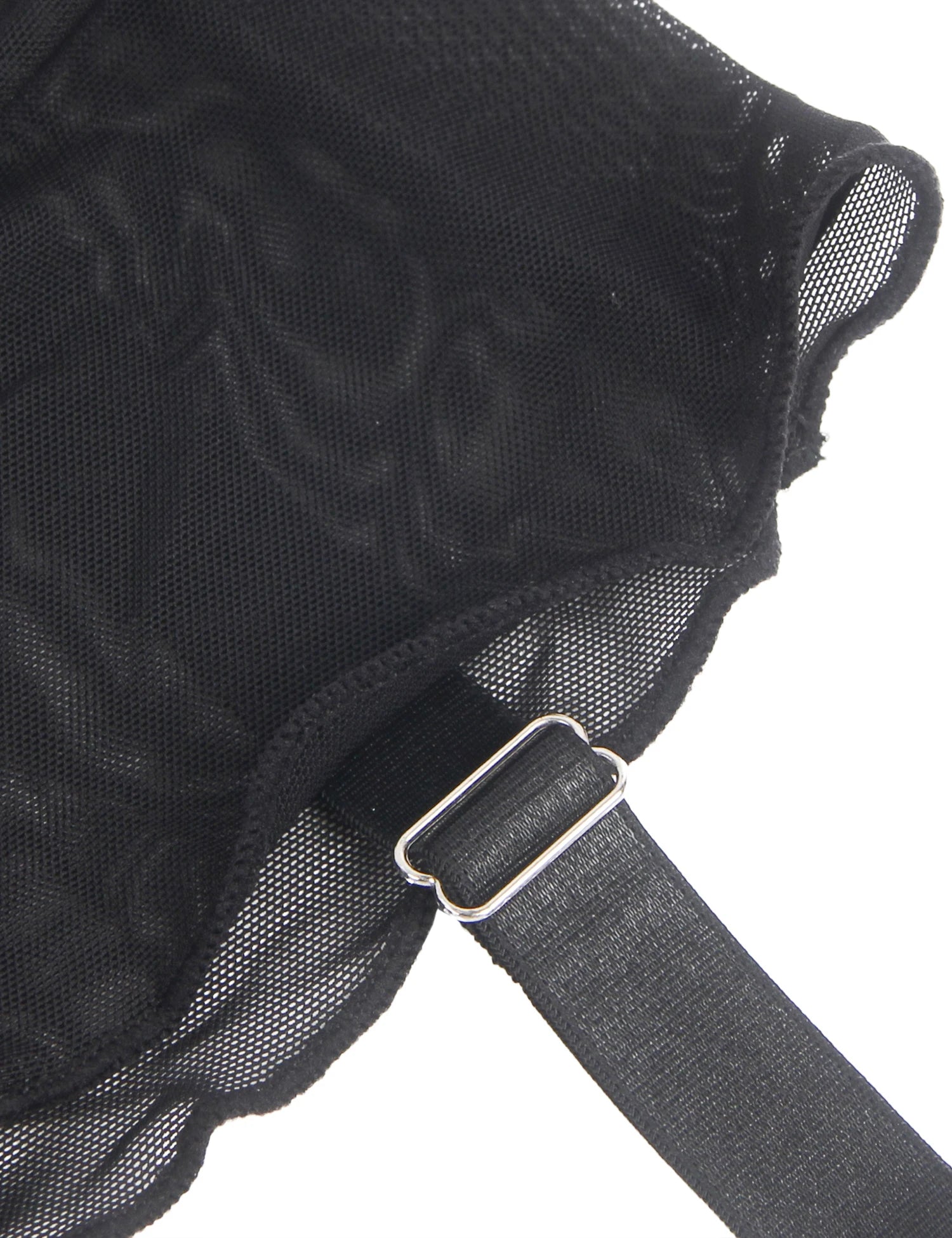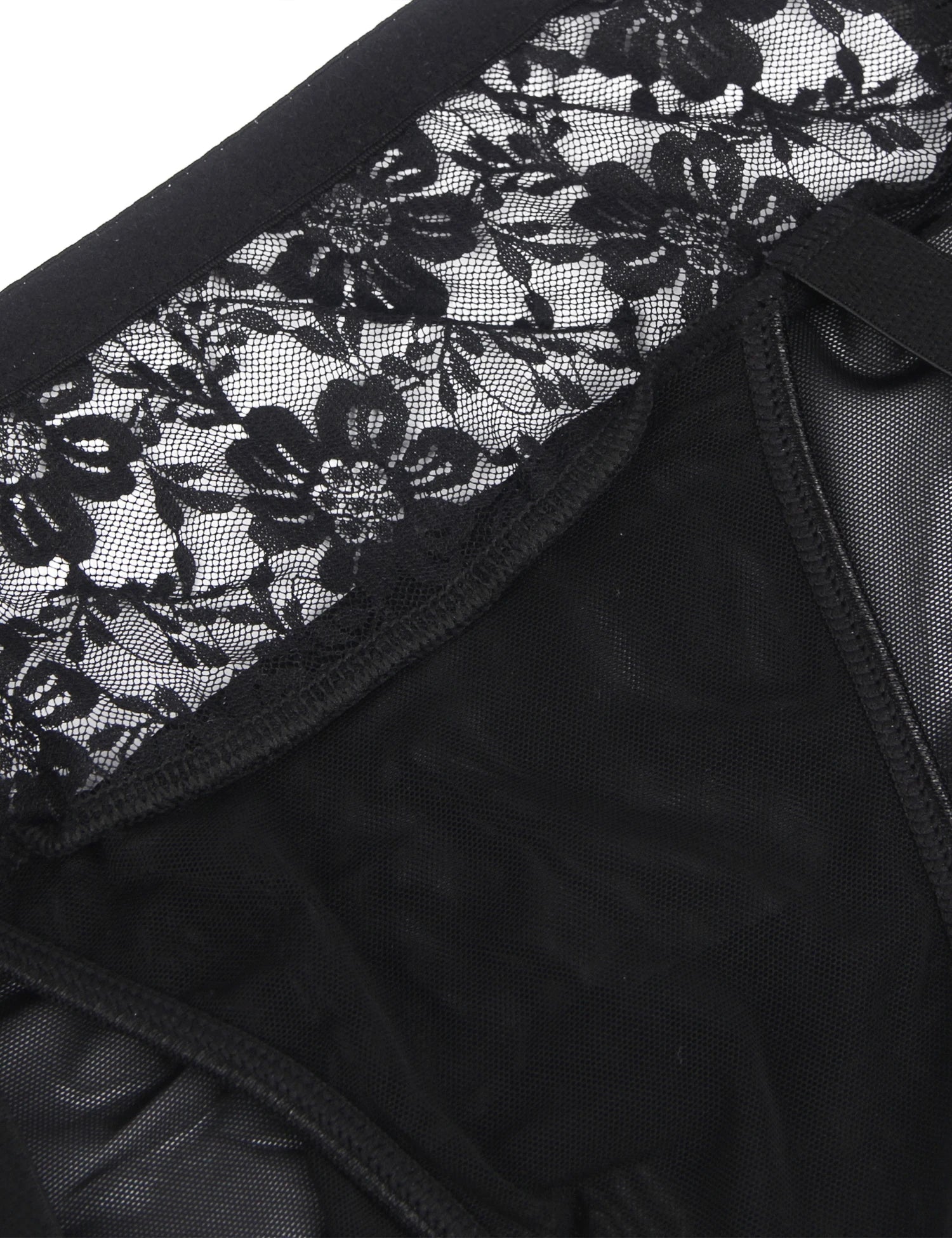 Women's Black Floral Lace Mid-Waist Sheer Mesh Garter with Metal Clips